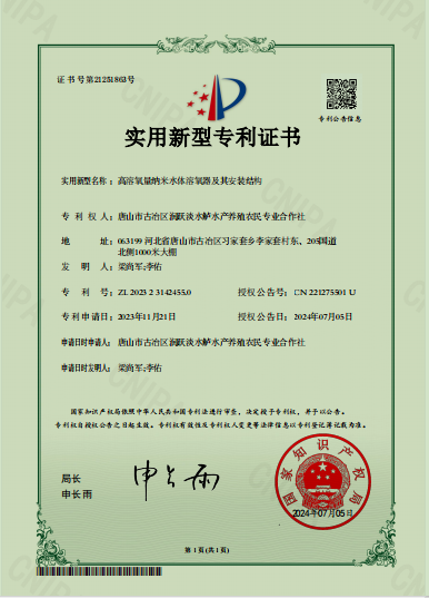 高(gāo)溶氧量納米水(shuǐ)體(tǐ)溶氧器(qì§≤)及其安裝結構專利  &♦♥; 閉合循環式水(shuǐ>γ)産養殖尾水(shuǐ)處理(lǐ)系統專↓¥利